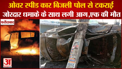फरीदाबाद:ओवर स्पीड कार बिजली पोल से टकराई,जोरदार धमाके के साथ लगी आग,एक की मौत,2 घायल