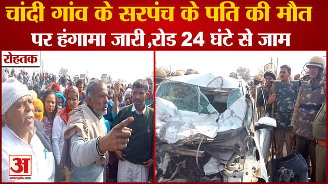 रोहतक:चांदी गांव के सरपंच के पति की मौत पर हंगामा जारी,रोहतक-जींद NH जाम