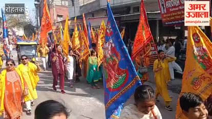 रोहतक की खाटू की निशान यात्रा में 2101 ध्वज के साथ शामिल हुए श्रद्धालु