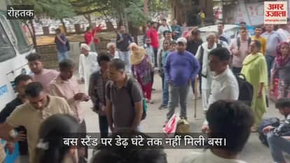 रोहतक: बस स्टैंड पर डेढ़ घंटे तक नहीं मिली बस, धरने पर बैठे यात्री