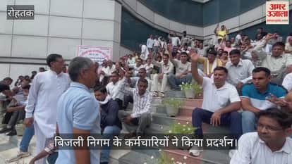 रोहतक: ऑनलाइन तबादला नीति का बिजली निगम के कर्मचारियों ने किया प्रदर्शन