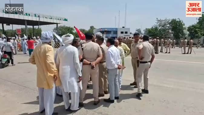 रोहतक: मकड़ौली टोल पर किसानों ने लगाया जाम, दिया सांकेतिक धरना