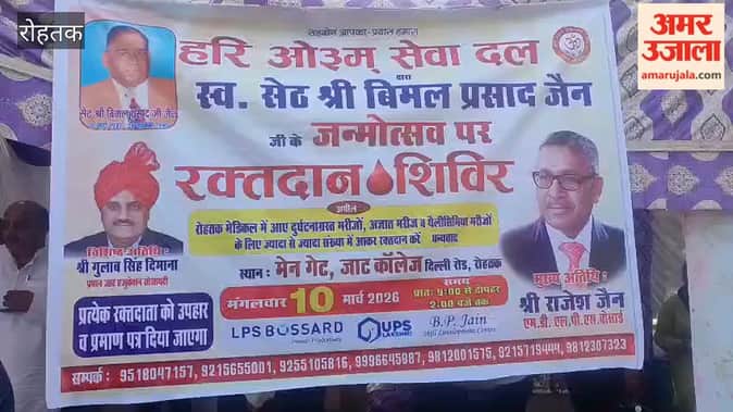 जाट कॉलेज के गेट के सामने मंगलवार को हरि ओ३म् सेवा दल की ओर से सेठ बिमल प्रसाद जैन के जन्मोत्सव पर रक्तदान शिविर का आयोजन किया गया। शिविर में दोपहर 12:30 बजे तक करीब 35 रक्तदाताओं ने रक्तदान किया। इस दौरान रक्तदाताओं को प्रशस्ति पत्र व पुरस्कार भेंटकर सम्मानित किया गया। रक्तदान शिविर के दौरान मुख्य अतिथि समाजसेवी राजेश जैन व जाट शिक्षण संस्थान के प्रधान गुलाब सिंह दिमाना, राजीव जैन, हरी ओम व सन्नी आदि मौजूद रहे।