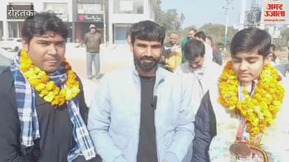 रोहतक: पदक विजेता शूटर हंसिका का किया गया स्वागत