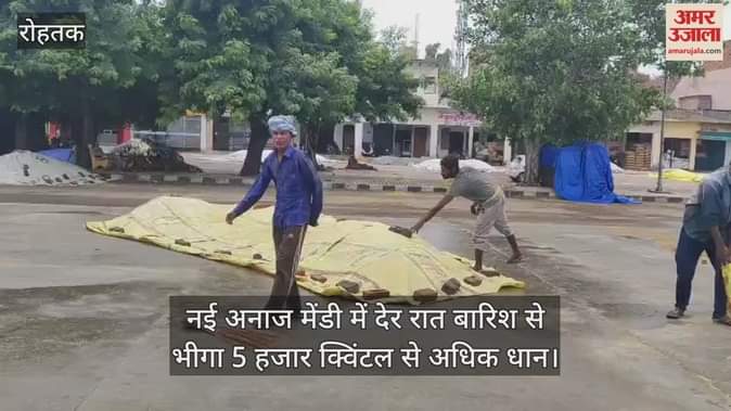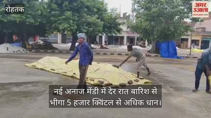 रोहतक में नई अनाज मंडी में देर रात बारिश से भीगा 5 हजार क्विंटल से अधिक धान