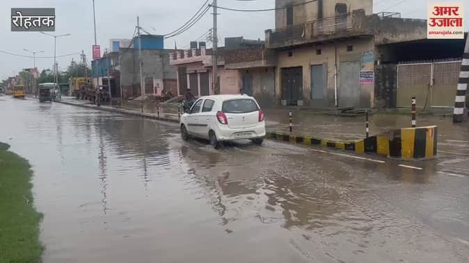 रोहतक में जींद बाईपास रोड पर बारिश से जलभराव, आवागमन प्रभावित