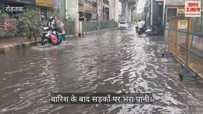 रोहतक में हुई बारिश से जहां लोगों को गर्मी से राहत मिली तो वहीं बारिश के बाद सड़कों पर पानी भर गया। सड़कों पर पानी भरने से वाहन चालकों को काफी दिक्कतों का सामना करना पड़ा। शनिवार दोपहर को हुई बारिश के बाद रोहतक की सड़कों पर यह नजारा देखने को मिला।