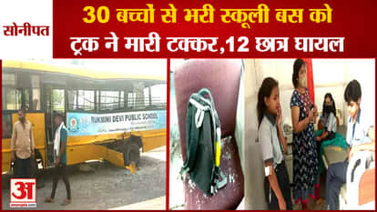सोनीपत:30 बच्चों से भरी स्कूली बस को ट्रक ने मारी टक्कर,12 छात्र घायल