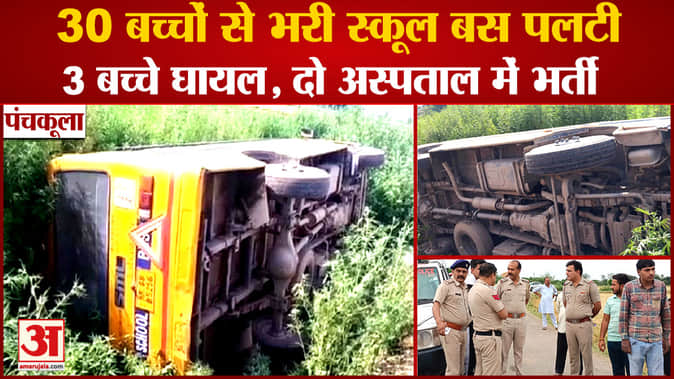 पंचकूला:30 बच्चों से भरी स्कूल बस पलटी,3 बच्चे घायल, दो अस्पताल में भर्ती