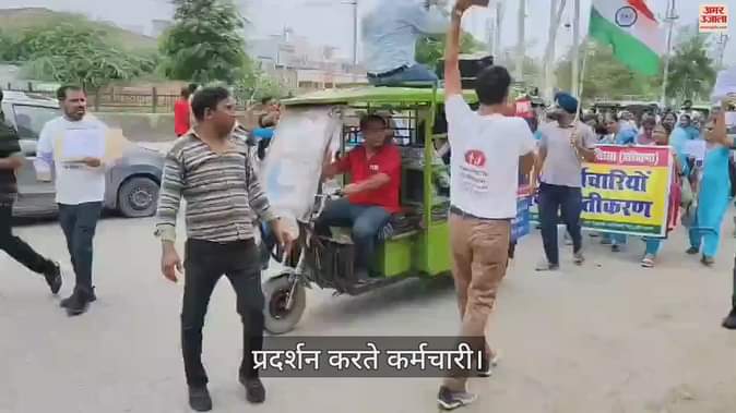 VIDEO : सिरसा में एनएचएम कर्मचारियों जारी रखी हड़ताल, मांगी भीख