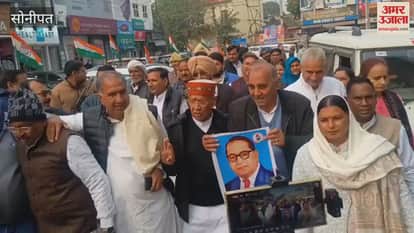 केंद्रीय गृहमंत्री अमित शाह की तरफ से बाबा साहेब पर दी गई टिप्पणी के विरोध में कांग्रेस पार्टी के विधायक, पूर्व विधायक व कार्यकर्ता मंगलवार को कांग्रेस भवन में एकत्रित हुए। बाबा साहेब भीमराव आंबेडकर के चित्र पर पुष्प अर्पित किए। यहां से बरोदा विधायक इंदुराज नरवाल के नेतृत्व में उपायुक्त कार्यालय तक पैदल यात्रा निकाली और प्रदर्शन किया। कांग्रेस विधायक इंदु राज नरवाल ने कहा कि केंद्रीय गृहमंत्री ने बाबा साहेब के बारे में जो टिप्पणी की वह बहुत गलत है। भाजपा पहले ही संविधान को खत्म करना चाहती थी।