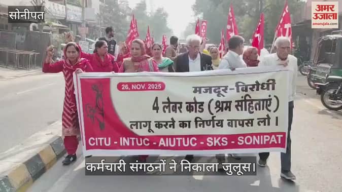 सोनीपत: कर्मचारी संगठनों ने निकाला जुलूस, श्रम संहिता की जलाई प्रतियां
