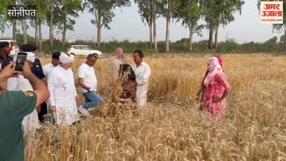 In Sonipat, Cooperation Minister Dr. Arvind Sharma participated in the harvest; accompanied by his wife, Dr. Rita Sharma, he visited the fields of Bidhal village.