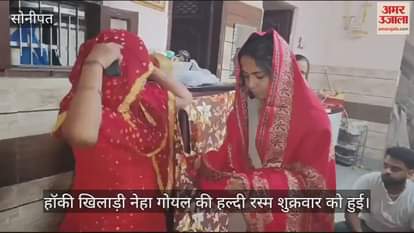 खेल मैदान पर छाने के बाद भारतीय महिला हॉकी टीम की खिलाड़ी नेहा गोयल अब अपनी जिंदगी की नई पारी शुरू करने जा रही हैं। आठ साल के प्यार को अरेंज मैरिज के रूप में परवान चढ़ने की खुशी नेहा के चेहरे की रंगत को और बढ़ा रही है। महिला एशिया चैंपियंस ट्रॉफी जीतकर लौटने के बाद अब वह शादी की रस्मों को निभाने में जुटी हुई है। शुक्रवार सुबह नेहा गोयल की शादी की लग्न पत्रिका लिखी गई तो शाम को हल्दी की रस्म अदा की गई।