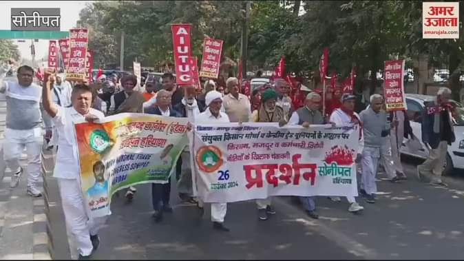 सोनीपत में संयुक्त किसान मोर्चे व केंद्रीय ट्रेड यूनियन के आह्वान पर विभिन्न संगठनों के सदस्यों ने मंगलवार को शहर में प्रदर्शन किया। लघु सचिवालय में पहुंचने पर खंड विकास एवं पंचायत अधिकारी (बीडीपीओ) अंकुर को राष्ट्रपति के नाम ज्ञापन सौंपा। इससे पहले विभिन्न संगठनों के सदस्य व पदाधिकारी पंचायत भवन में एकत्रित हुए और वहां से जुलूस निकालकर छोटू राम चौक से होते हुए लघु सचिवालय में पहुंचे।
