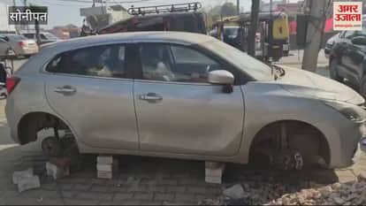 VIDEO : Thieves stole all four tyres of a car in Sonipat, car found standing on bricks in morning