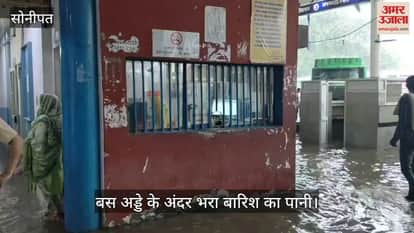 सोनीपत: बस अड्डे के अंदर भरा बारिश का पानी, लोगों को हुई परेशानी