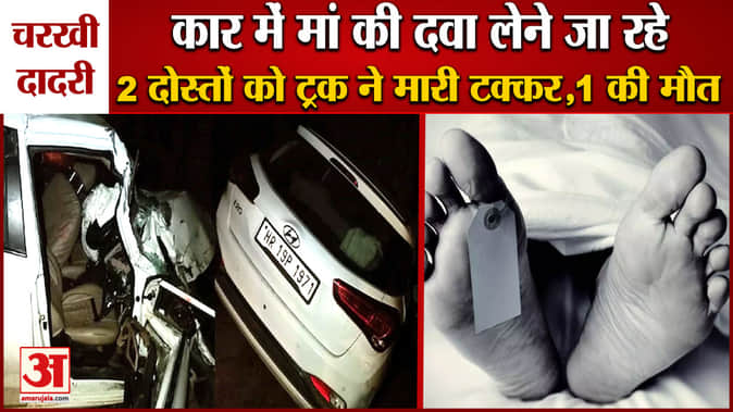 चरखी-दादरी:कार में मां की दवा लेने जा रहे 2 दोस्तों को ट्रक ने मारी टक्कर,1 की मौत