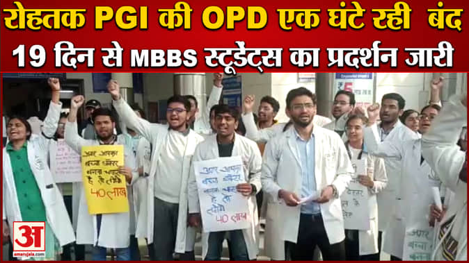 रोहतक PGI की OPD एक घंटे बंद रही,19 दिन से MBBS स्टूडेंट्स का प्रदर्शन जारी