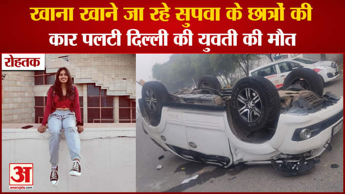 रोहतक:खाना खाने जा रहे सुपवा के छात्रों की कार पलटी, दिल्ली की युवती की मौत