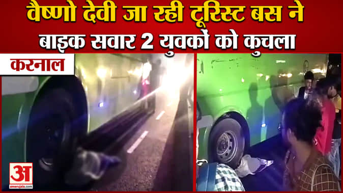 करनाल:भीषण सड़क हादसा,वैष्णो देवी जा रही टूरिस्ट बस ने बाइक सवार 2 युवकों को कुचला