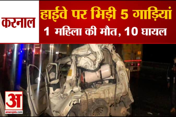 करनाल में दर्दनाक हादसा, हाईवे पर भिड़ी 5 गाड़ियां, एक महिला की मौत, 10 घायल