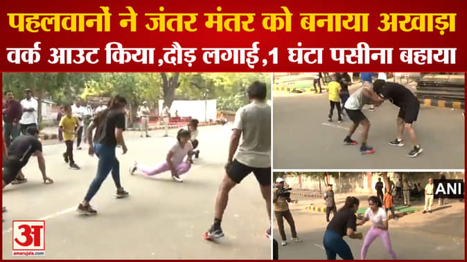 पहलवानों ने जंतर मंतर को बनाया अखाड़ा,वर्क आउट किया,दौड़ लगाई,1 घंटा पसीना बहाया