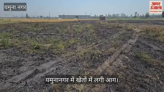 यमुनानगर में खेतों में लगी आग, गेहूं के फाने व गन्ना जला