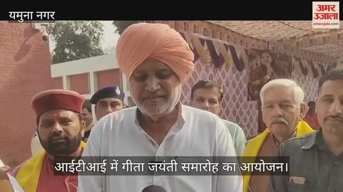 राजकीय आईटीआई यमुनानगर में मातृभूमि सेवा मिशन द्वारा अंतर्राष्ट्रीय श्रीमद्भगवद्गीता जयंती समारोह बड़े उत्साह और आध्यात्मिक वातावरण में मनाया गया। कार्यक्रम की शुरुआत वैदिक हवन-यज्ञ से हुई, जिसकी अग्नि प्रज्वलन का शुभ कार्य हरियाणा के कृषि मंत्री श्याम सिंह राणा ने किया। हवन में आईटीआई के प्रधानाचार्य भूपेंद्र सिंह सांगवान, मिशन के संस्थापक डॉ. प्रकाश मिश्रा, संजय नरवाल, रमेश सैनी, अजाइब सिंह, गुरमेज़ सिंह सहित सभी स्टाफ सदस्य और विद्यार्थी शामिल हुए। वैदिक मंत्रोच्चार से पूरा परिसर आध्यात्मिक ऊर्जा और सकारात्मकता से भर उठा।