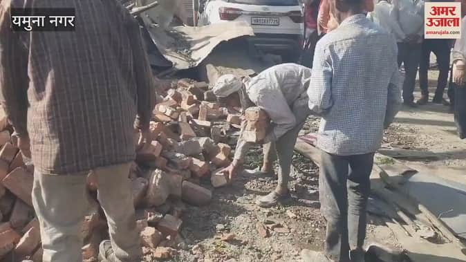 VIDEO : यमुनानगर में निर्माणाधीन दुकान का लेंटर गिरा, चार मजदूर घायल