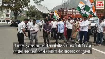 बिलासपुर में कांग्रेस कार्यकर्ताओं और नेताओं ने नेशनल हेराल्ड मामले में सोनिया गांधी और राहुल गांधी के खिलाफ चार्जशीट पेश करने का विरोध किया। उन्होंने मुख्यालय स्थित शहीद स्मारक के सामने केंद्र सरकार का पुतला फूंका। इस दौरान केंद्र सरकार, भाजपा, प्रधानमंत्री नरेंद्र मोदी के खिलाफ जमकर नारेबाजी भी की गई। कांग्रेस के वरिष्ठ नेता एवं हिमुडा निदेशक जितेंद्र चंदेल ने कहा कि भाजपा की केंद्र सरकार विपक्ष और अपने सहयोगी दलों को डराने के लिए ईडी सहित अन्य केंद्रीय जांच एजेंसियों का दुरुपयोग कर रही है। केंद्र सरकार देश में बढ़ती बेरोजगारी, महंगाई के मुद्दों पर ध्यान भटकना चाहती है। यदि ऐसा ही चलता रहा तो वह दिन दूर नहीं, जब देश की आम जनता सड़कों पर उतरेगी और केंद्र की मोदी सरकार को जड़ से उखाड़ फेंकने का काम करेगी। इस मौके पर जिला परिषद सदस्य गौरव शर्मा, जिला महिला विकास निगम की अध्यक्ष तृप्ता ठाकुर, युवा कांग्रेस के पूर्व जिला अध्यक्ष आशीष ठाकुर आदि मौजूद रहे।