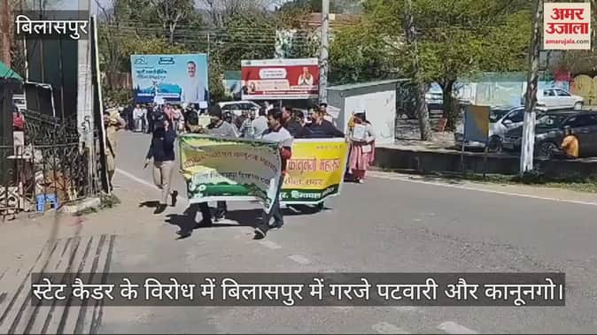 स्टेट कैडर के विरोध में पटवारी और कानूनगो अब सड़क पर उतर आए हैं। शुक्रवार को बिलासपुर में पटवारी और कानूनगो ने जिला मुख्यालय में रैली निकालकर प्रदर्शन किया। पटवारी कानूनगो ने उपायुक्त कार्यालय पहुंचकर जमकर नारेबाजी भी की। उन्होंने सरकार से स्टेट कैडर को वापस लेने की मांग उठाई।