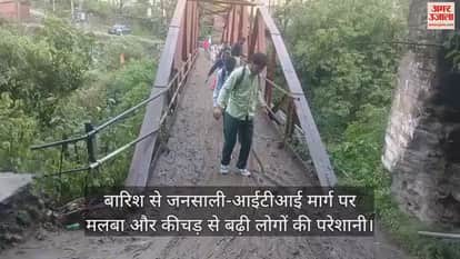 चंबा शहर के जनसाली वार्ड के जनसाली-आईटीआई मार्ग पर बीते रोज हुई मूसलाधार बारिश की वजह से टनों के हिसाब से मलबा और कीचड़ ने स्कूली बच्चों समेत लोगों की मुश्किलों को बढ़ा दिया है। साल खड्ड पर बने लोहे के पैदल पुल पर बड़ी मात्रा में कीचड़ में बच्चे गिरते संभलते गुजरते नजर आए।। कीचड़ की वजह से बच्चों की वर्दियां, जूते तक खराब हो गए। इतना ही नहीं बारिश की वजह से मोहल्ले में टनों के हिसाब से मलबा, पत्थर के ढेर लगे हैं। इस मार्ग से होकर आईटीआई, एमबीबीएस प्रशिक्षु, स्कूली बच्चों समेत मजदूरी के लिए ग्रामीणों की आवाजाही होती है। ग्रामीणों ने उपायुक्त चंबा से मलबे कीचड़ की समस्या का उचित समाधान निकालने की मांग उठाई है।