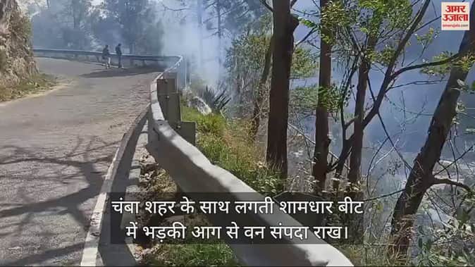 VIDEO : चंबा शहर के साथ लगती शामधार बीट में भड़की आग से वन संपदा राख