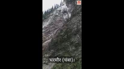 VIDEO : गुईनाला से दोनाली मणिमहेश जाने वाले रास्ते पर पहाड़ी से भारी भूस्खलन