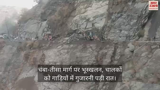 VIDEO : चंबा-तीसा मार्ग पर भूस्खलन, चालकों को गाड़ियों में गुजारनी पड़ी रात