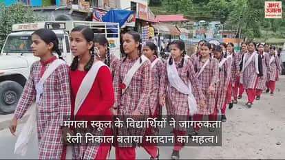 राजकीय वरिष्ठ माध्यमिक विद्यालय मंगला के विद्यार्थियों ने जागरुकता रैली निकाल कर लोगों को मतदान के लिए प्रेरित किया। विद्यालय परिसर से विद्यार्थियों की ओर से जागरुकता रैली निकाली गई, जोकि पूरी पंचायत का भ्रमण करने के बाद विद्यालय परिसर में वापिस पहुंच कर संपन्न हुई। जागरुकता रैली में स्कूली बच्चों ने नारों के माध्यम से लोगों को मतदान का महत्व बताया। मंगला विद्यालय के प्रधानाचार्य नरेंद्र भारद्वाज ने बताया कि मतदान में ग्रामीणों की सहभागिता को बढ़ाने के लिए दैनिक समाचार पत्र अमर उजाला की ओर से महत्वपूर्ण भूमिका निभाई जा रही है। इसी क्रम में जिला निर्वाचन अधिकारी चंबा मुकेश रेपसवाल के निर्देशानुसार लोगों को मतदान के लिए प्रेरित करने के लिए विभिन्न कार्यक्रम चलाए जा रहे हैं। उपायुक्त चंबा के निर्देशानुसार समस्त स्कूल प्रंबधकों को मतदान को लेकर मतदाताओं को जागरूक करने के लिए विभिन्न प्रतियोगिताएं और जागरुकता रैली निकालने के आदेश दिए गए हैं। शनिवार को राजकीय वरिष्ठ माध्यमिक पाठशाला मंगला में मतदान क्लब, ईको और एनएसएस के तहत मतदाता जागरुकता रैली निकाली गई। इस दौरान लोगों से अपील की गई कि वे अपने घरों और गांवों के लोगों को मतदान करने के लिए प्रेरित करते हुए मतदान कर अपने अधिकार का इस्तेमाल कर एक सशक्त सरकार बनाने में योगदान दें।