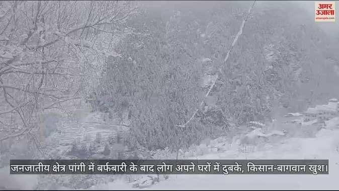 VIDEO : जनजातीय क्षेत्र पांगी में बर्फबारी के बाद लोग अपने घरों में दुबके, किसान-बागवान खुश
