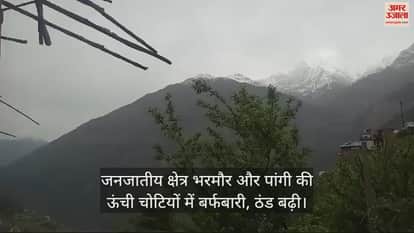 VIDEO : जनजातीय क्षेत्र भरमौर और पांगी की ऊंची चोटियों में बर्फबारी, ठंड बढ़ी