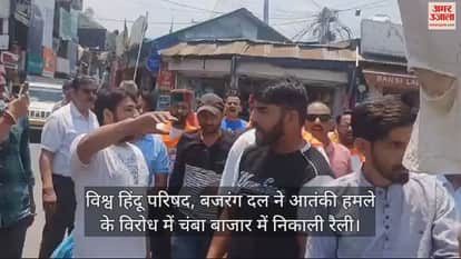 VIDEO : विश्व हिंदू परिषद, बजरंग दल ने आतंकी हमले के विरोध में चंबा बाजार में निकाली रैली