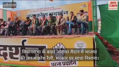 VIDEO : विधानसभा के बाहर जोरावर मैदान में भाजपा की जनआक्रोश रैली, सरकार पर साधा निशाना