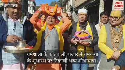 VIDEO : धर्मशाला के कोतवाली बाजार में रामकथा के शुभारंभ पर निकाली भव्य शोभायात्रा