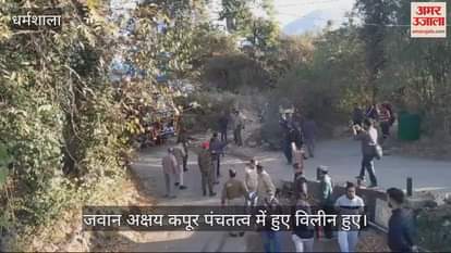 हिमाचल प्रदेश के विधानसभा क्षेत्र धर्मशाला के समीपवर्ती ग्राम पंचायत बाघनी के जवान अक्षय कपूर पंचतत्व में हुए विलीन हुए। इससे पहले जवान की पार्थिव देह चौथे दिन सोमवार सुबह पैतृक गांव पहुंची। बलिदानी पति की पार्थिव देह के घर पहुंचते ही पत्नी बेसुध हो गई। वहीं मां ने नोटों का हार अपने लाडले की पार्थिव देह पर चढ़ाया। अक्षय की बहन सभी से बलिदानी भाई को सैल्यूट करने करने को कहती रही। इस दाैरान हर आंख नम हुई। वहीं पूरा क्षेत्र भारत माता की जय, अक्षय कपूर अमर रहे के नारों से गूंज उठा। पार्थिव देह को बड़े भाई ने मुखाग्नि दी। पत्नी ने दुल्हन के लिबास में अपने पति को अंतिम विदाई दी। पूरे सैनिक सम्मान के साथ मृतक सैनिक का अंतिम संस्कार किया गया। मृतक सैनिक को श्रद्धांजलि देने के लिए बड़ी संख्या में जिला प्रशासन के अधिकारी मौजूद रहे। वहीं विधायक सुधीर शर्मा, कांग्रेस नेता देवेंद्र जग्गी सहित पूर्व विधायक विशाल नैहरिया भी श्रद्धांजलि देने के लिए आए थे। उल्लेखनीय है कि अरुणाचल प्रदेश में शुक्रवार को हृदयाघात से सेना जवान अक्षय कपूर(29) का निधन हो गया था। दो माह पहले ही अक्षय की शादी हुई थी। अक्षय के निधन की सूचना मिलने के बाद शुक्रवार से ही उनके घर में रिश्तेदारों व सगे संबंधियों सहित ग्रामीणों का शोक संतप्त परिवार को सांत्वना देने के लिए आने का सिलसिला जारी रहा। रविवार को भी लोगों का तांता लगा रहा। अक्षय अरुणाचल प्रदेश में डोगरा बटालियन में तैनात थे।