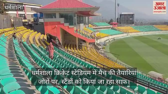 Video: धर्मशाला क्रिकेट स्टेडियम में मैच की तैयारियां जोरों पर, स्टैंडों को किया जा रहा साफ