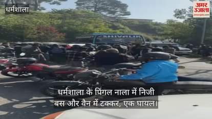 VIDEO : धर्मशाला के पिंगल नाला में निजी बस और वैन में टक्कर, एक घायल
