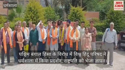 धर्मशाला: पश्चिम बंगाल हिंसा के विरोध में विश्व हिंदू परिषद ने किया प्रदर्शन, राष्ट्रपति को भेजा ज्ञापन