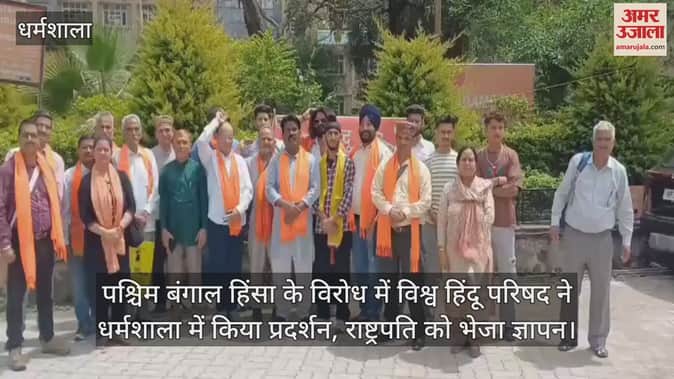 विश्व हिंदू परिषद ने शनिवार को धर्मशाला में डीसी कार्यालय परिसर में पश्चिम बंगाल में हो रही हिंसा के विरोध में प्रदर्शन किया। इस दौरान डीसी के माध्यम से राष्ट्रपति को ज्ञापन भेजकर बंगाल में राष्ट्रपति शासन लगाने की मांग रखी। संगठन के प्रांत अध्यक्ष राजेंद्र ने कहा कि वक्फ कानून के विरोध की आड़ में संपूर्ण बंगाल को हिंसा की आग में जलाया जा रहा है, हिंदुओं को प्रताड़ित किया जा रहा है, राष्ट्र विरोधी और हिंदू विरोधी तत्वों को निर्बाध रूप से अपने षडयंत्रों को क्रियान्वित करने की खुली छूट दी जा रही है जो गलत है।