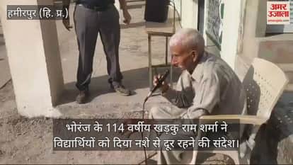 VIDEO : भोरंज के 114 वर्षीय खड़कु राम शर्मा ने विद्यार्थियों को दिया नशे से दूर रहने की संदेश