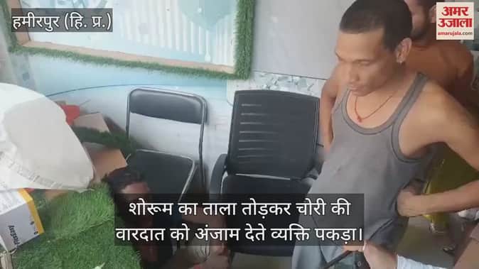 Hamirpur: शोरूम का ताला तोड़कर चोरी की वारदात को अंजाम देते व्यक्ति पकड़ा