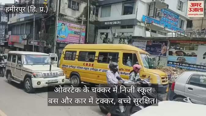 गांधी चौक हमीरपुर के समीप ओवरटेक के चक्कर में निजी स्कूल बस और एक कार में टक्कर हो गई। इस दौरान सड़क पर जाम लग गया। दोपहर को करीब 1:00 बजे कार सवार हमीरपुर की ओर जा रहा था। निजी स्कूल वाहन चालक के ओवरटेक करने के प्रयास में स्कूल बस गाड़ी के पिछले हिस्से से टकरा गई। इस टक्कर में गाड़ी को हल्का नुकसान हुआ है। बस में सवार स्कूली बच्चे सुरक्षित हैं। मौके पर पहुंची पुलिस ने मामले की जांच शुरू कर दी।